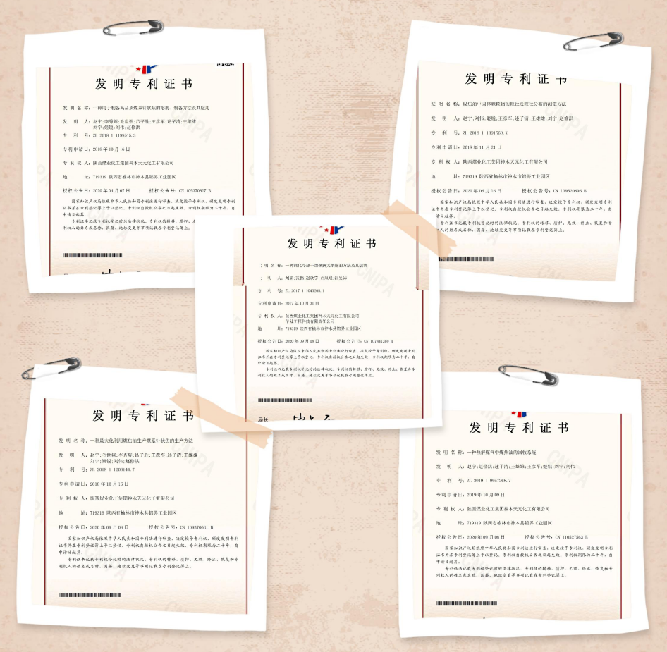 獲得授權的100件專利主要涵蓋了天元公司“低階粉煤熱解分質利用技術、中低溫煤焦油輕質化及其化學品技術、中低溫煤焦油提酚技術、中低溫煤焦油制取碳材料技術、高濃度有機廢水處理技術”五個煤炭分質清潔高效轉化利用技術。其中,“中高溫煤焦油加氫裂化工藝”專利技術先后榮獲中國專利優秀獎、陜西省專利一等獎。“一種帶煤氣循環的回轉爐粉煤熱解生產無煙煤方法”“一種粉煤干餾熱解和延遲焦化組合分質利用技術”“一種煤焦油提取吡啶類化合物的方法”三件專利榮獲陜西煤業化工集團公司2014-2017年度專利三等獎。