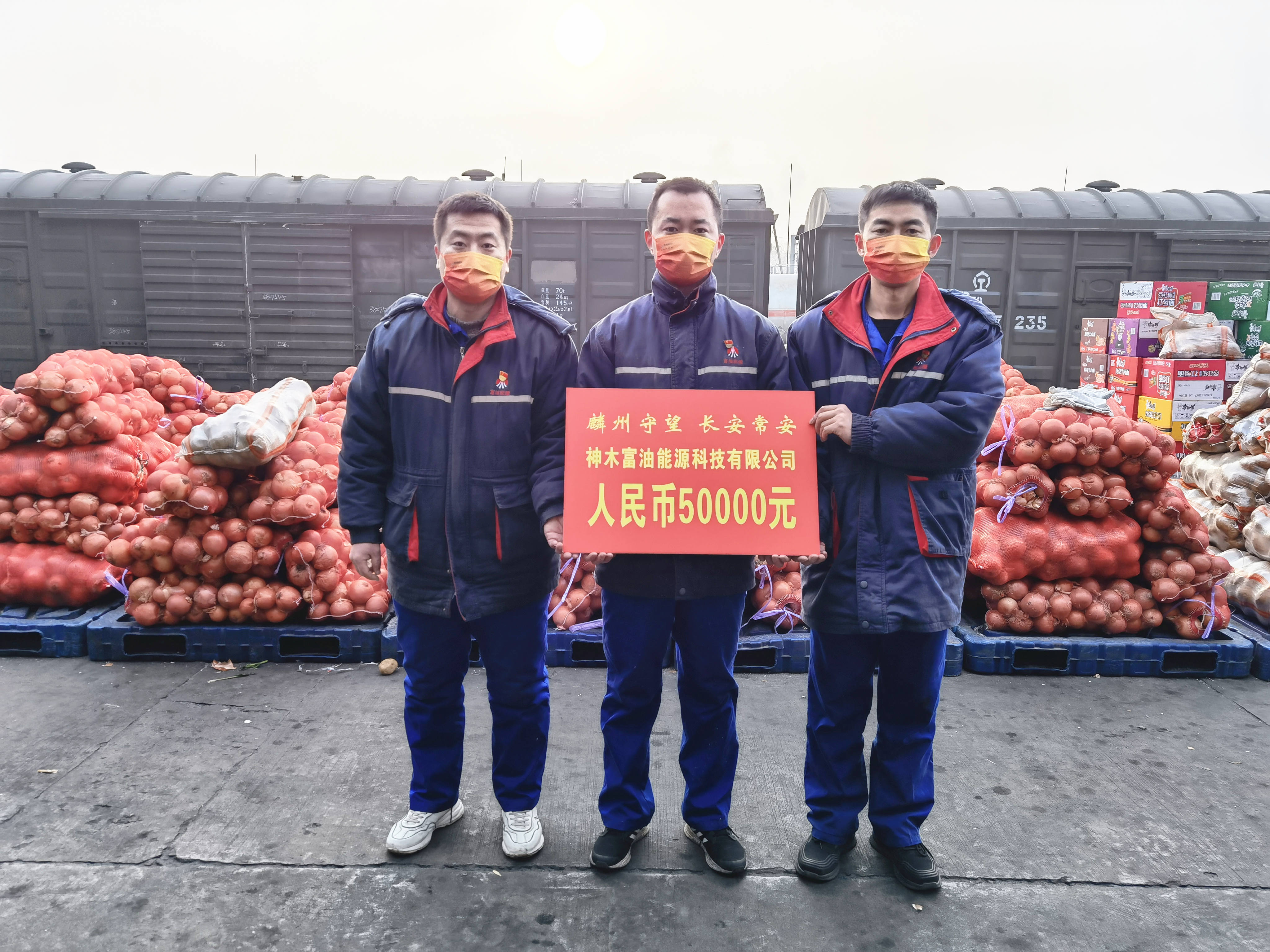 1月8日凌晨,一輛貼有“富油馳援 西安必勝”橫幅滿載著8噸愛心蔬菜、200箱方便面及10000支口罩的貨車從神木煤化工富油公司出發前往火車站集中裝車,極速馳援西安抗疫,預計晚22時抵達西安市。
