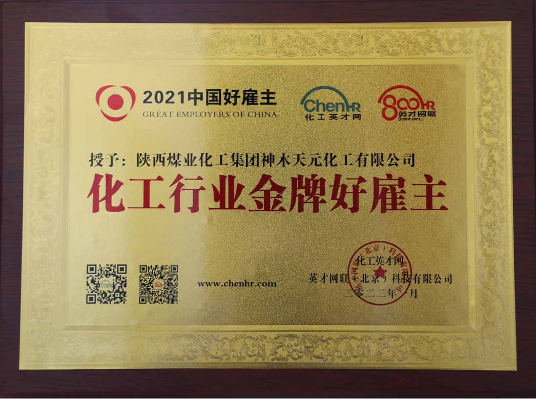 近日,由英才網(wǎng)聯(lián)、化工英才網(wǎng)主辦的第六屆“中國好雇主”評選活動圓滿結(jié)束。神木煤化工天元公司通過層層篩選,最終在評選中脫穎而出,榮獲“化工行業(yè)金牌好雇主”稱號。