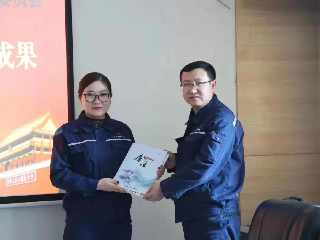 “哇,這是我妻子寫給我的廉潔家書啊,還有我們?nèi)腋U掌 ?月25日,該公司紀(jì)委召開2021年度廉政文化建設(shè)成果分享會,紀(jì)委書記張福增為參會人員一一贈書,翻開電化公司《蓮品潤企-廉潔文化優(yōu)秀作品選集》,電石分廠廠長高鵬言語激動。