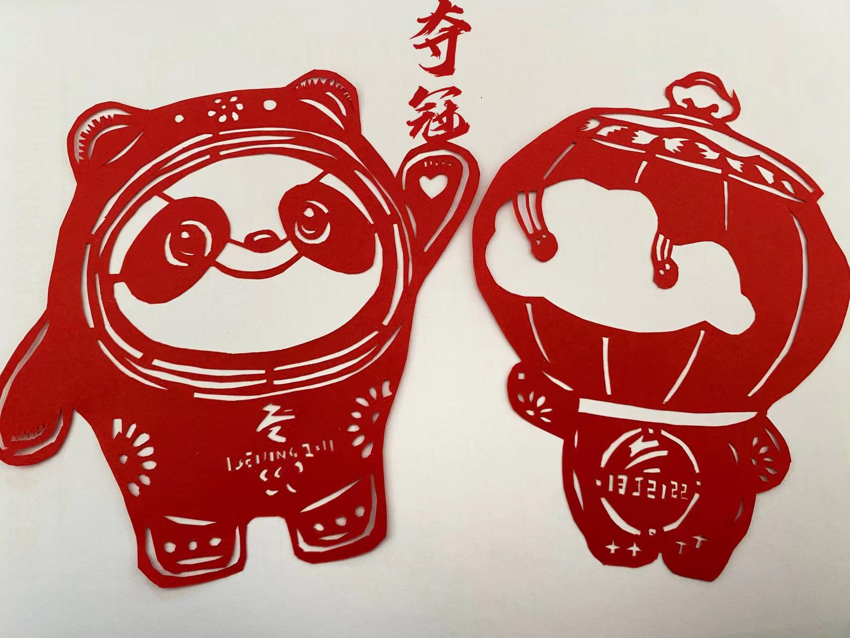 “冰墩墩”“雪融容”等冬奧元素的剪紙,