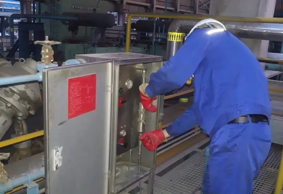 近日,神木煤化工富油公司FTH中心工藝技術員朱凱正在檢查循環氫密閉取樣器衛生及壓縮機出口壓力表外觀清理情況,此類環保檢查朱凱每天都要進行。這是該中心圍繞“強管理”開展的管理提升中的一項措施。