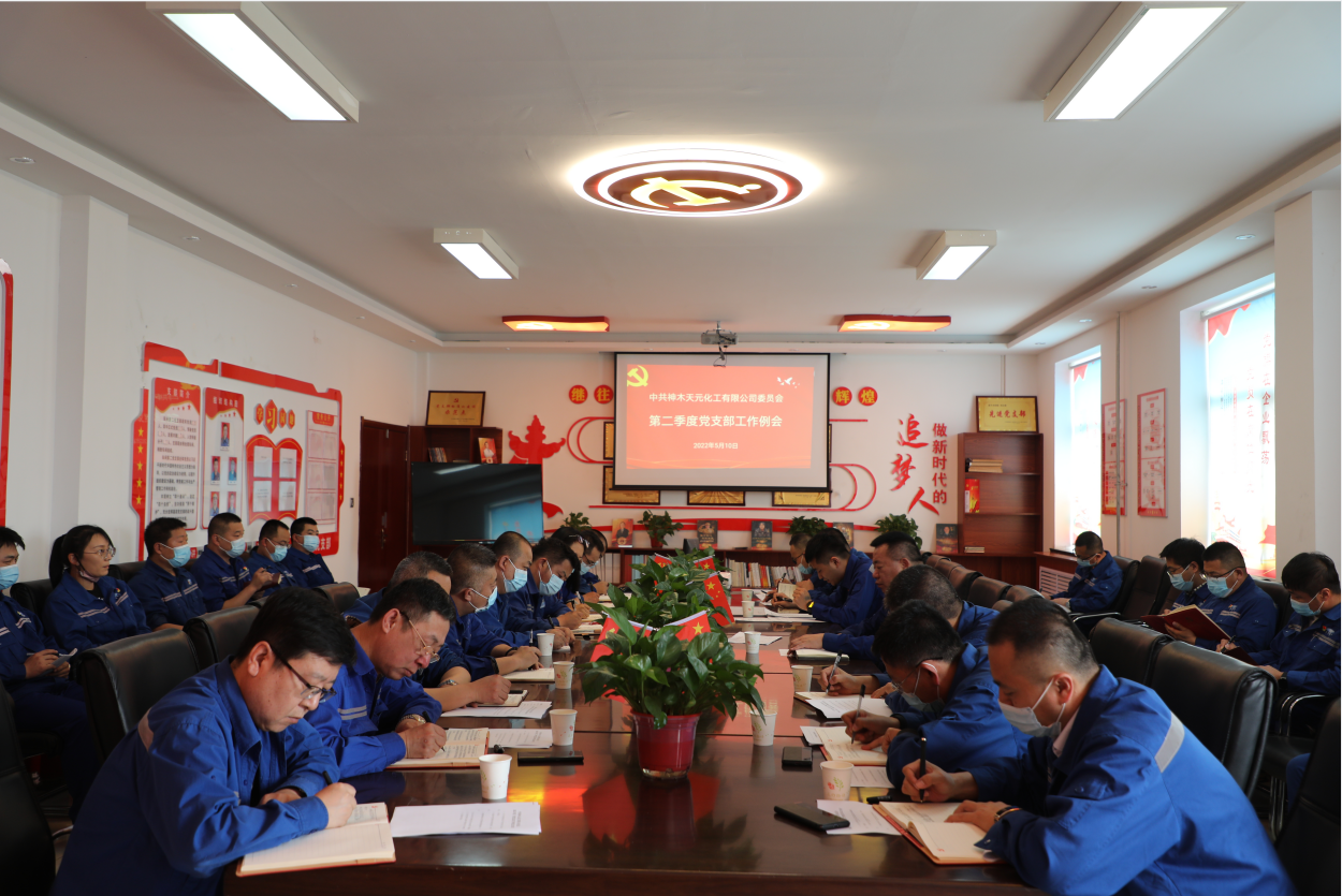 會議學習了文章《推動全面從嚴治黨在國有企業落實落地》,通報了第一季度神木煤化工公司及天元公司黨支部標準化專班督導檢查情況,聽取了天元公司各黨支部工作開展情況及下一步工作計劃,針對第二季度黨支部工作重點進行了安排部署。